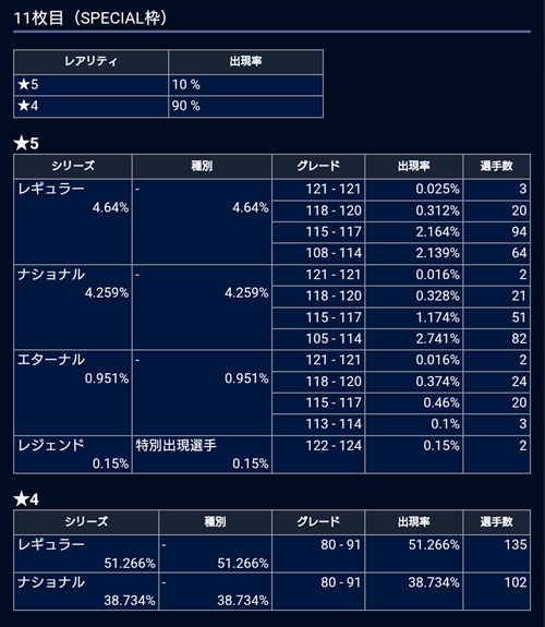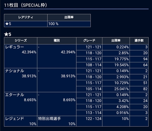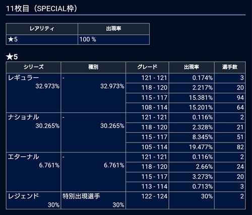 ■10回目確率:SP枠★5確定!レジェンド出現率30%
