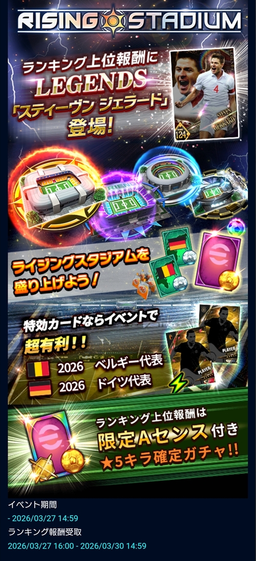 HOME > イベント > RISING STADIUM 2026年3月22日 スポンサーリンク 開催日: 2026年3月20日 3:00 PM - 2026年3月27日 3:00 PMカテゴリー: 【ウイコレ】イベント スポンサーリンク 関連コンテンツ -