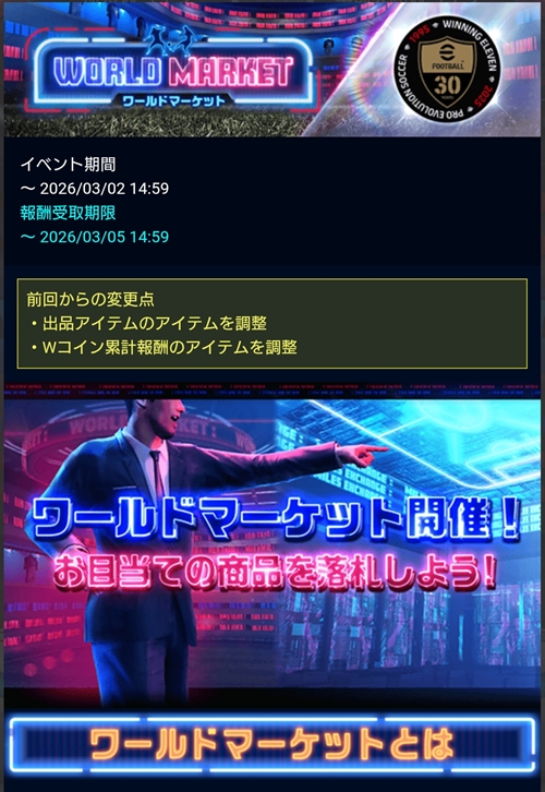 HOME > イベント > WORLD MARKET(ワールドマーケット) 2026年3月1日 スポンサーリンク 開催日: 2026年2月24日 3:00 PM - 2026年3月2日 3:00 PMカテゴリー: 【ウイコレ】イベント スポンサーリンク 関連コンテンツ -
